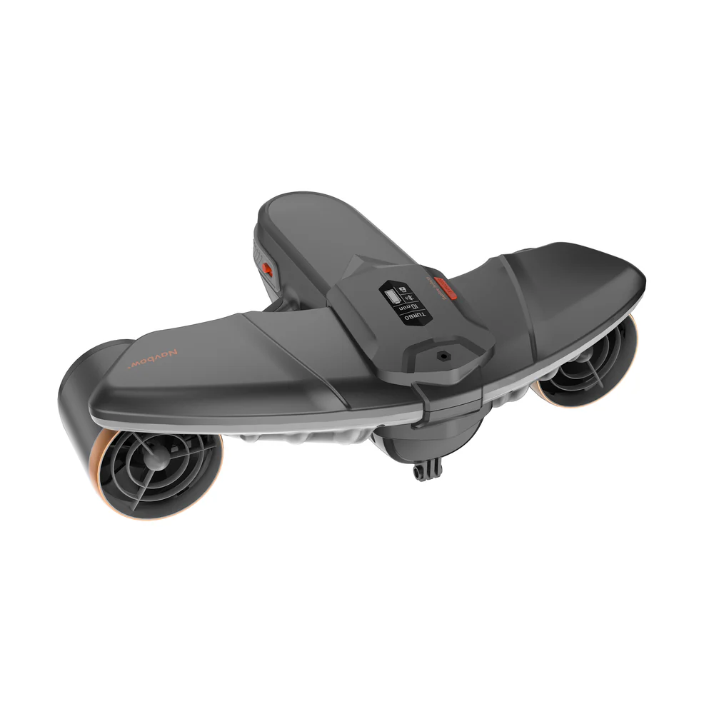 The Navbow+ is Sublue's professional-grade underwater scooter featuring three speed modes, a top speed of 4.5 mph, and a smart OLED display for real-time monitoring of depth, temperature, battery life, and direction.